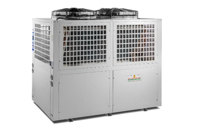 A commercial hot water heat pump delivers large volumes of hot water efficiently